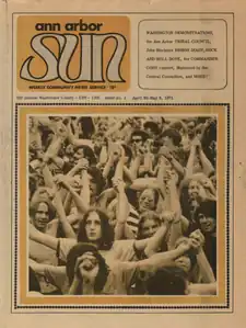 On July 28, 1969, the Ann Arbor Sun printed a revised copy of the White Panther Party's ten-point program. The newspaper was considered to be the mouthpiece for the party for quite some time before the newspaper transitioned to an independent publication spreading views on local issues, left-wing politics, music, and arts. Finally in 1976, the publication of the Ann Arbor Sun was suspended indefinitely.[2]