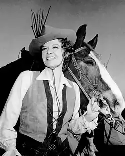 Her final role was as Henrietta Hanks in the television comedy Western series Pistols 'n' Petticoats, which was filmed while she became increasingly ill in 1966, and was broadcast on CBS on Saturday nights.[38] The 19th episode of the series, "Beware the Hangman", aired as scheduled on the same day that she died in 1967.[39]