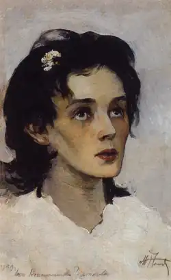 Anna Konstantinovna Chertkova (maiden name Diterikhs,[Note 1][1][2] September 17 [29],[Note 2] 1859, Kiev, Russian Empire - October 11, 1927, Moscow, USSR) was a children's writer, social activist, folklore collector, memoirist, and a model of Russian group of painters known as The Itinerants (Peredvizhniki).[3] Her literary pseudonyms are "A. Ch." and "A. Ch-va".[4]