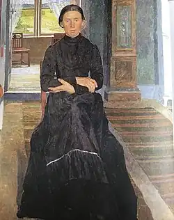 For the rest of her life, she created both paintings and woodcuts. While her paintings were mainly portraits, her woodcuts depicted landscape scenes including Myr (1910), Skära hafre (1912), Fårklippning (1915) and Regnet hotar (1930).[1] As for portraits, she is remembered for those of Carl Wilhemson, for example Wilhelmson lägger upp Juniafton (1900) while Wilhemson painted several of her, using her as a model.[3] Her works are in the collections of museums in Sweden and abroad, including Nationalmuseet which has 15 of her woodcuts in its collection.[1]