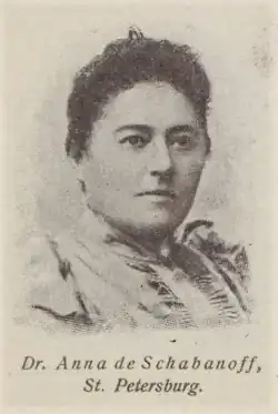 Anna Nikolaevna Shabanova (1848 in Shabanovo, Smolensky Uyezd, Smolensk Governorate, Russian Empire โ 1932 in Leningrad, Soviet Union) was a pioneering Russian woman pediatrician and women's rights activist.