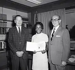Her 34-year career included developing and implementing computer code that analyzed alternative power technologies, supported the Centaur high-energy upper rocket stage, determined solar, wind and energy projects, and identified energy conversion systems and alternative systems to solve energy problems.[13] During the 1970s Easley worked on a project examining damage to the ozone layer. With massive cuts in the NASA space program, Easley began working on energy problems; her energy assignments included studies to determine the life use of storage batteries, such as those used in electric utility vehicles. Her computer applications have been used to identify energy conversion systems that offer the improvement over commercially available technologies. Following the energy crisis of the late 1970s, Easley studied the economic advantages of co-generating power plants that obtained byproducts from coal and steam.[14] After retiring in 1989, she remained an active participant in the Speaker's Bureau and the Business & Professional Women's association.[10] Despite her long career and numerous contributions to research, she was cut out of NASA's promotional photos. In response to one such event, Easley responded by saying "I'm out here to do a job and I knew I had the ability to do it, and that's where my focus was, on getting the job done. I was not intentionally trying to be a pioneer."[11]