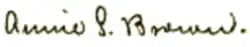 Brown was the author of Fireside Battles, a novel for girls. The story, simply told, describes an old fashioned home left unprovided for by the death of the father. While the mother is portrayed as doing nothing to improve the family's life thereafter, the heroine's efforts gradually conquer poverty and discouragement. The various incidents bring out the strong points and weaknesses of each member of the family.[5]