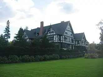 After years of renting houses in Lenox, Massachusetts,[11] they acquired a summer estate on a bluff overlooking Frenchman Bay located at 45 Hancock Street in Bar Harbor, Maine.[34] There, Kane had a Tudor Revival Cottage built between 1903 and 1904, designed by local architect Fred L. Savage, that was known both as Breakwater and Atlantique (although today it is known as the John Innes Kane Cottage).[d] The interior of the house, however, featured Colonial and Georgian Revival eighteenth-century styling.[12] His widow left the home to Kane's nephew, U.S. diplomat Peter Augustus Jay and his wife, the former Susan Alexander McCook, who left it to her daughter, Susan Mary Alsop.[35]