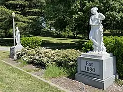 "Annie" and "Fannie" are a pair of statues in Tacoma, Washington's Wright Park, in the United States. Sometimes collectively referred to as the "Dancing Girls" and "Greek Maidens",[1][2] the sculptures flank the park's entrance at Division Avenue. Depicting dancing Greek maidens,[3] the similar artworks were cast in a sandstone and concrete composite. Both were purchased and donated by local businessman Clinton P. Ferry in Europe in 1891,[4] during the park's development. Their nicknames refer to Charles Wright's daughter and the park's proximity to Annie Wright Seminary, as well as the Fannie Paddock Hospital. Also known as "Violet" and "Pansy" during the 1930s, the sculptures were restored and erected on marble bases in 2009.[5]