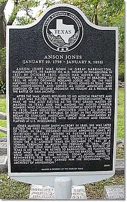 - ^ Anson Jones: The Last President of Texas, p. 17, at Google Books