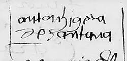 Like all the founding neighbors, Anton Higueras de Santana had received land grants. He owned a ranch located in the town of Las Conchas (Buenos Aires Province).[10] He had two natural daughters, one of them was Beatriz Morena de Santana (wife of Francisco Rodriguez).[11]