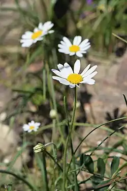 Anthemis cretica subsp. carpatica, the snow carpet, is a subspecies of flowering plant in the genus Anthemis and in the family Asteraceae. It may also be treated as a full species, Anthemis carpatica.