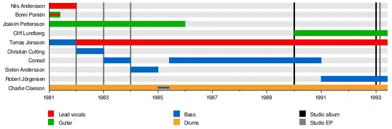 - Nils "Nillen" Andersson - vocals (1981-1982) (Other bands: DNA)