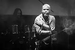 2013 saw Moss tour extensively with pianist/vocalist Vic Anselmo, throughout Europe, returning to Armenia In May that year to headline the '1st Annual Rock Fest Competition'.[19] In September, the first electric Antimatter shows were performed in Italy by Mick Moss with his live band, marking an immediate change from bare-bones acoustic tours to full electric tours from this point onward, including by a package tour with Finnish band Swallow The Sun a month later, which Moss performed having been discharged from hospital after abdominal surgery only a day earlier.[52]