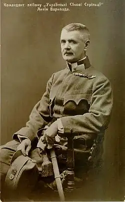 Antin Varivoda (Ukrainian: Анті́н Вариво́да, romanized: Antin Varyvoda) (10 January 1869 - 12 March 1936) was a Ukrainian Commander of the Legion of Ukrainian Sich Riflemen, and Colonel of the Ukrainian Galician Army.