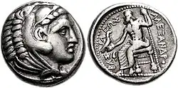 ![]() Coinage of Alexander the Great, Amphipolis mint, struck under Antipater for Philip III Arrhidaeus, circa 322–320 BC.[1] | |