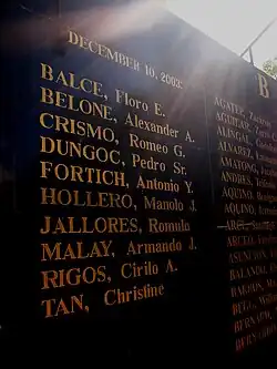 His name is inscribed on the Wall of Remembrance at the Philippines' Bantayog ng mga Bayani (Monument of Heroes), in recognition of his opposition to the excesses of the 21-year dictatorship of Ferdinand Marcos.[10]
