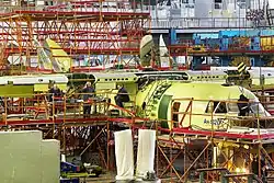 The Antonov/Taqnia An-132 was an improved version of the Antonov An-32 twin-engined turboprop military transport aircraft that was under development jointly by Saudi Arabia and Ukraine.[2][3] The project was suspended in April 2019 following the withdrawal of Saudi support, and the cancellation of orders from the Royal Saudi Air Force, that was to be the launch customer. Subsequently the An-132D prototype, the only one completed, was heavily damaged in the Battle of Antonov Airport in February 2022. Since then there has been no further update on the project from Antonov. [4][5]
