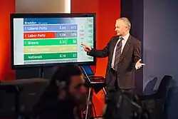 As the ABC's chief election analyst, Green was responsible for the content of its election website. He also has editorial responsibility for its data analysis and for their election-night results service. He is considered "the face of election night coverage".[11][13]