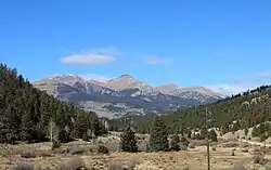 Antora Peak (center) and other peaks in the Sawatch Range. | |