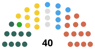 Political groups | DUP (13) UUP (6) Sinn Féin (9) Alliance (8) SDLP (1) Independent (3) |