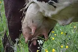 The Aosta Red Pied is raised both for milk and for meat. Milk yield averages 4000 kg per lactation; the milk has 3.55% fat[4] and is high in κ-casein, making it suitable for cheese-making.[2]: 91 The milk is used to make Fontina, but also in less well-known local cheeses such as Vallée d'Aoste Fromadzo, Reblec, Salignon, Seras and Gressoney toma cheese[6].[2]: 91