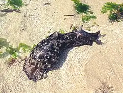 Aplysia depilans, the depilatory sea hare, is a species of sea hare or sea slug, a marine opisthobranch gastropod mollusk in the family Aplysiidae. Its name has led to a folk etymology that its consumption caused hair loss.