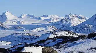 ![]() Apusiaajik Glacier seen from Kulusuk Island | |