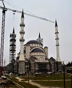 Construction works started in September 2015, with the deadline moved multiple times from early 2020 to 2021.[6] In September 2015, the partially-recognised[7] Grand Mufti of Crimea, Emirali Ablayev announced that the construction project would be funded by Turkish authorities and built by a Turkish construction company.[8] However, private donations from local and Russian donors were also raised.[9]