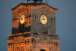 Arachova has a panoramic view, uphill small houses and the cobbled streets show a picturesque architecture. The town center includes a huge and steep cliff, the Bell Tower, covered with dense ivy. At the top of the tower is a large 10m height clock. Arachova is famous for its black wine, its "brusque", the colorful textiles, carpets and rugs, handicrafts and woodcut creations as well.
