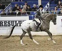 ![]() An AraAppaloosa being shown under Western sidesaddle. | |