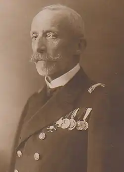 In 1879, Charles Stephen was commissioned as a Seefähnrich in the Austro-Hungarian Navy. Appointed his naval governor in 1879 was Fregattenkapitän (later admiral) Hermann von Spaun, who accompanied him on a voyage to Brazil and North America in the goelette Saida. In 1896, he retired from active duty. He continued, however, to be advanced in rank, attaining the rank of admiral in 1911.[2] He was named Marineinspekteur (navy inspector), making him the titular ranking officer of the navy. Others, however, had effective control of operations in 1914–1918; Anton Haus, Maximilian Njegovan and Miklós Horthy each served in turn as Flottenkommandant (Fleet Commander). In 1918, the Emperor Charles I put him in charge of the enquiry into the mutiny of the navy at Cattaro (now Kotor in Montenegro). Charles Stephen recommended a sweeping re-organisation of the navy and the appointment of Miklós Horthy as commander-in-chief.[3]