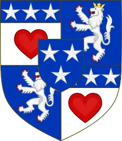 Archibald's coat of arms quartered the family arms of Douglas (featuring the famous Douglas heart) with the silver lion of the Lordship of Galloway. Upon marriage, he placed his wife's arms in an escutcheon of pretence