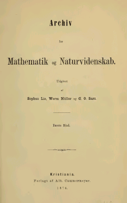 The Archiv for Mathematik og Naturvidenskab (translated: Archive of mathematics and natural science) was a scientific journal published in Oslo. Its first issue appeared in 1876, and was edited by the mathematician Sophus Lie, the physician Jacob Worm-Müller, and the biologist Georg Ossian Sars, and published by Albert Cammermeyer.[1] The last issue appeared in 1961.