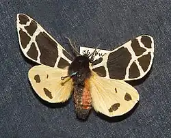 Arctia flavia, the yellow tiger moth, is a moth of the family Erebidae. The species was first described by Johann Kaspar Füssli in 1779. It is found in the Alps above the tree level. It also occurs in Balkan mountains (Rila), European Russia, northern Kazakhstan, Siberia, Mongolia, north-eastern China, and Korea.