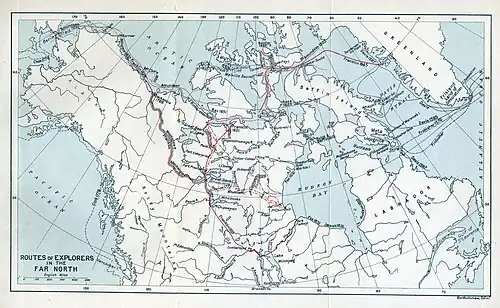 Government interest in the North began with the English explorations of Frobisher and Davis in the 1500s and the 1670 Hudson's Bay Company (HBC) charter.[3] The HBC charter gave the company title to Rupert's Land, the watershed of Hudson Bay. In 1821, the rest of the present-day Northwest Territories and Nunavut south of the Arctic coast was added to the charter. Then, in 1870, the Hudson's Bay Company transferred title to its lands to Canada with its purchase of Rupert's Land. Thus, the new dominion acquired legal sovereignty over all of what is now northern Canada except for the Arctic islands. This northern mainland sovereignty has never been questioned although there have been challenges to Canada's Arctic sovereignty in the past.[3]