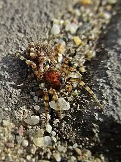 Arctosa perita, also known as the sand bear spider,[1] is a species of wolf spider in the family Lycosidae. They are native to Europe, North Africa, Turkey, the Caucasus, and Russia, however they have also been introduced into Canada.[2][3][4][5] They live on dry, sandy soils or coastal dunes, where they create their burrows.[1]