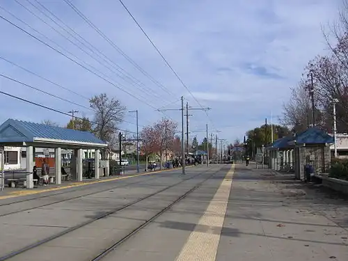 Arden/Del Paso station is an at-grade light rail station on the Blue Line of the SacRT light rail system operated by the Sacramento Regional Transit District. The station is located alongside Arden Way at its intersection with Del Paso Boulevard, after which the station is named, in the city of Sacramento, California.[4] The station serves as a major bus transfer point and is served by six routes.[1]