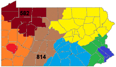 West: 724/878, 440/436 | area code 814, 582 | East: 570/272, 717/223 |
