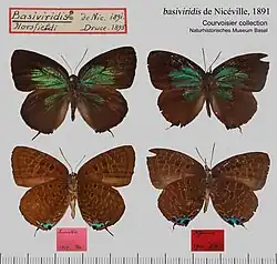 - A. h. basiviridis (Peninsular Malaya, Sumatra, Bangka, Borneo) - a very regular and clear marking beneath, the light-edged spots and bands being almost of the groundcolour.
