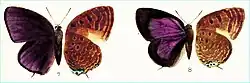 | Arhopala tameanga male, female from original description | |