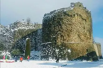 The repeated Barbarian invasions of the 5th and 6th centuries precipitated the rapid decline of ancient villae and other scattered settlements.[44] The bloody wars waged by the Byzantine Empire against the Ostrogoths and Lombards drove soldiers and civilians to seek refuge on the Tricolle, a higher and more defensible location. With the rise of the Lombards in the Duchy of Benevento (7th–8th centuries), the first fortified structures of the Ariano Castle were erected to guard against Byzantine territories.[45]