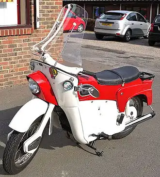 The Ariel Leader was a British motorcycle produced by Ariel Motorcycles between 1958 and 1965. A radical design, the Leader was fully enclosed with an integral windscreen and was the first British motorcycle to have optional[2] flashing indicators.[3] After a few years of success, Ariel could no longer compete against Japanese imports. The last Ariel Leader was made when the factory closed in 1965.[4]