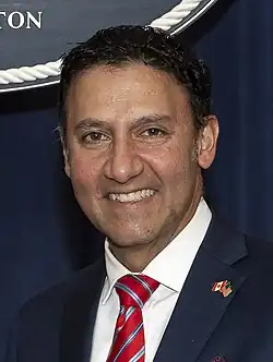 Arif Virani (born November 23, 1971) is a Canadian lawyer and former politician who served as the minister of justice and attorney general of Canada from 2023 to 2025. A member of the Liberal Party, Virani represented Parkdale—High Park in the House of Commons from 2015 to 2025.