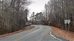 Near Berine, a former alignment now bears the Clark County Road 12 designation. Along the former alignment, the McNeely Creek Bridge is listed on the National Register of Historic Places. To the east of Arkadelphia, Highway 51 formerly crossed the Ouachita River on a historic truss bridge.[12] The bridge was closed to vehicular traffic in 2018 upon the opening of a new bridge.[13]