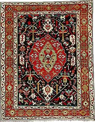 The term Armenian carpet (Armenian: Հայկական գորգ; haykakan gorg) designates, but is not limited to, tufted rugs or knotted carpets woven in Armenia or by Armenians from pre-Christian times to the present.[1][2][3] It also includes a number of flat woven textiles. The term covers a large variety of types and sub-varieties. Due to their intrinsic fragility, almost nothing survives—neither carpets nor fragments—from antiquity until the late medieval period.