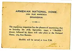 There is also much Armenian history in Shanghai. The Armenian Relief Society had a chapter in Shanghai as early as 1920.[13]