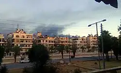 Armenians in Syria are present in both rural and urban areas. The villages of Kessab, Yakubiyah, Ghnemiyeh and Aramo had Armenian majorities prior to the civil war, and are located near the contested border region of Hatay Province.[10] Kessab was attacked and looted in an ambush by Syrian Rebels who were given passage through Hatay province by Turkey, (although they deny this claim) and Yacubiyah had their Armenian population expelled by Al Nusra.[12][26] Excluding those villages, Armenians are primarily urban. Most Armenians of Syria live in Aleppo, with other cities including Latakia, Damascus, Qamishli, Raqqa, Tell Abyad, Al-Hasakah, Deir ez Zor, Al-Malikiyah and Ras al-Ayn, although some of which have had their populations expelled such as Raqqa and Deir ez Zor. In 2015, the local St. Rita Catholic Armenian church was also destroyed, according to unconfirmed reports at that time, by rebel fighters.[27]