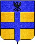 ![]() | Arms of Antonio Segni, President of Italy, 1962–1964 Ancestral arms: Or, a cross Azure. On a chief Or, an Eagle displayed Sable Crest: the coronet of an Italian Patrician proper As a Knight of the Papal Supreme Order of Christ, he bore the arms: Argent upon on a cogwheel proper, a Mullet of five points Argent fimbriated Gules, within a wreath of laurel Vert on a ribbon Gules the words "REPVBBLICA ITALIANA" in capital letters Argent. No crest No motto |
