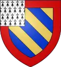 | Philip the Bold (1342 † 1404), Count of Touraine, then Duke of Burgundy (1364), son of John II, King of France Before 1364 : Azure, semé-de-lys or, a bordure compony of argent and gules.[9] After 1364 : Quarterly, 1 and 4, azure, semé-de-lys or, a bordure compony of argent and gules; 2 and 3 bendy of six or and azure, a bordure gules[3] |