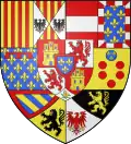 | Charles the Bold (1433 † 1477), Count of Charolais, son of preceding Arms of Burgundy (the arms of his father), brisured by a label argent.[16][17] At the death of his father in 1467, he became Duke of Burgundy, so he suppressed the label. |