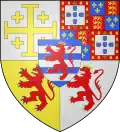 | Infante Henrique, Duke of Coimbra, second son of Duarte Nuno, Duke of Braganza The Royal arms of Portugal differenced by a label of three points argent, the second charged with the arms of Orléans and the third with the Imperial Arms of Brazil (alluding to the prince's mother, née Princess of Orléans e Bragança) | |