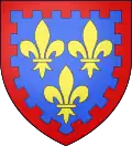 | Charles de France (1270 † 1325), Count of Valois, Alençon, Chartres and Perche (1285), Count of Anjou and Maine (1290), Duke of Anjou (1297), founder of the branch, son of Philip III, King of France before 1297 : Azure, semé-de-lys or, a bordure-label gules.[5] after 1297 : Azure, semé-de- lys or, a bordure gules.[2] |