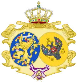 {{citation}}: CS1 maint: publisher location (link) - ^ Rijksvoorlichtingsdienst (RVD), ed. (8 January 2015). "Wapens van leden van het Koninklijk Huis" [Coats of Arms of the Dutch Royal Family, Website of the Dutch Monarchy, the Hague] (in Dutch). the Hague, the Netherlands. Retrieved 11 April 2019.